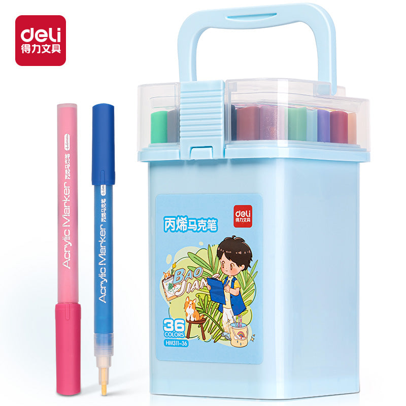 أقلام Deli Acrylic Marker HM311-36 مقاومة للماء ومصممة خصيصًا لفن الطلاب. وهي غير سامة وقابلة للغسل. الألوان الزاهية 36 لونًا.