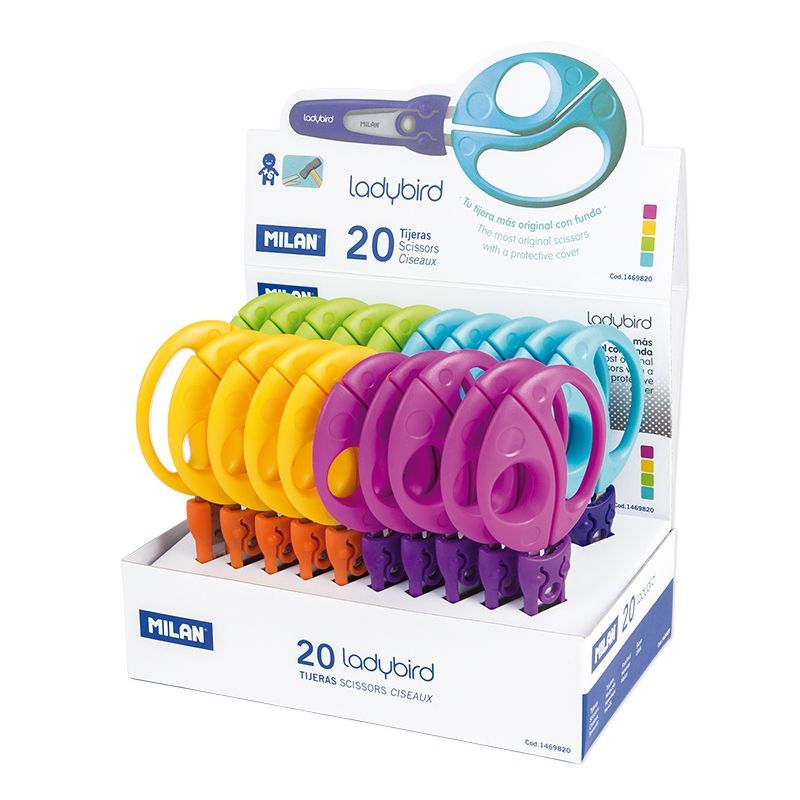 Scissors with case matching the handle, in two tones. Stainless steel blade and rounded tip. Ergonomic plastic handle. Ideal for use in school.Assorted colours: yellow, blue,...