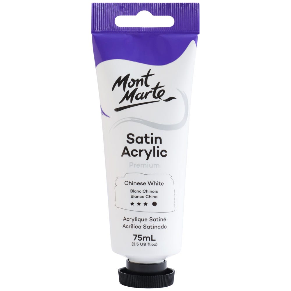 Satin acrylic paint premium 75ml (2.5 us fl.oz) tube - chinese white